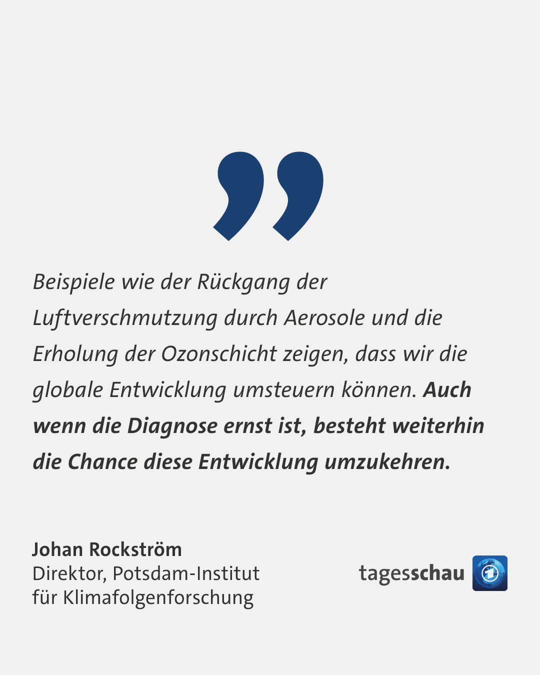 „Mehr als drei Viertel der lebenswichtigen Erdsystem-Funktionen befinden sich nicht mehr im sicheren Bereich. Die Menschheit verlässt ihren sicheren Handlungsraum und erhöht so das Risiko, den Planeten zu destabilisieren“, sagte PIK-Direktor Johan Rockström, Co-Autor des Berichts. Der Zustand der Erde verschlechtere sich massiv.